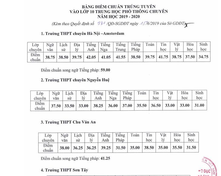 Ảnh: Tham khảo điểm chuẩn thi chuyên vào 10 năm học 2019-2020 nhé PH!